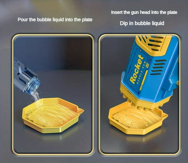 The Rocket Bubble Machine Gun with LEDs and included batteries offers an exciting and visually captivating bubble-blowing experience. Featuring bright LED lights that illuminate each bubble stream, this device adds a vibrant glow to outdoor play or parties. Its battery-powered design ensures easy portability and continuous fun without the hassle of cords. Crafted for comfortable handling and reliable performance, this bubble machine gun is perfect for creating memorable moments at any event or casual gathering.